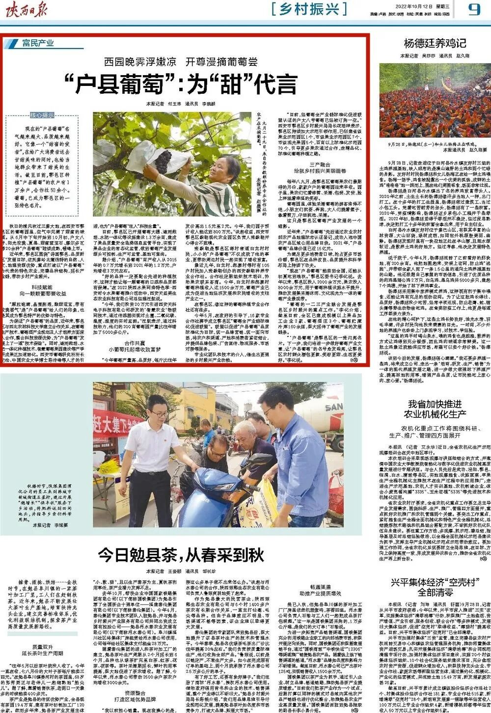 稻田葡萄秦岭陕西日报多版关注鄠邑