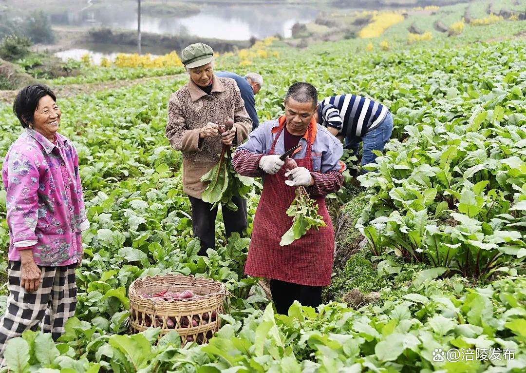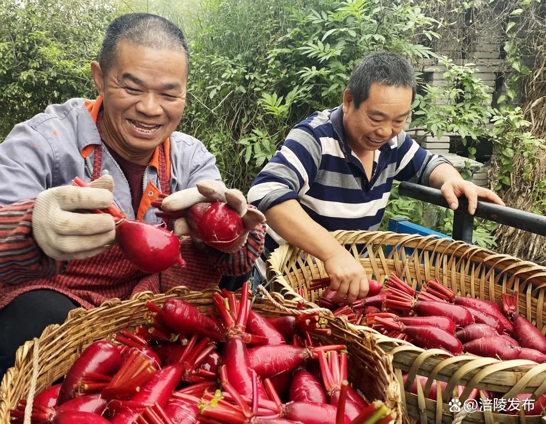 眼下,正是胭脂萝卜成熟的季节。在涪陵区江北街道松坪村,田间地头一派丰收景象,村民们的日子就像萝卜一样红红火火,美得很。