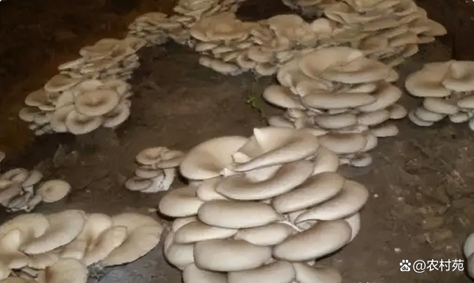 采收管理:平菇现蕾后,一般10天左右就可以采收了,采收第一潮菇后,清理死菇和残留的菇脚,不用喷水,盖上薄膜让菌丝恢复生长,7天后再揭膜按第一潮菇进行出菇管理。当第二潮菇采收完后,将栽培料移到室外,挖50厘米深的浅沟放栽培料,覆盖营养土(营养土的配比:菜园土壤土96%,草木灰2%,复合肥1%,生石灰1%,含水量70%)。按常规的出菇管理,还可以采收3至4潮菇。