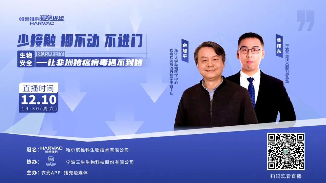直播主题 生物安全——让非洲猪瘟病毒遇不到猪 主讲嘉宾 浙江大学动物医学中心检疫检测与流行病学平台主任 余旭平 宁波三生技术服务部总监 柴伟东 来源:猪价收集于网络、农言明日猪价等仅供参考,如涉嫌侵犯您的著作权,请联系我们删除,谢谢! 往期精选
