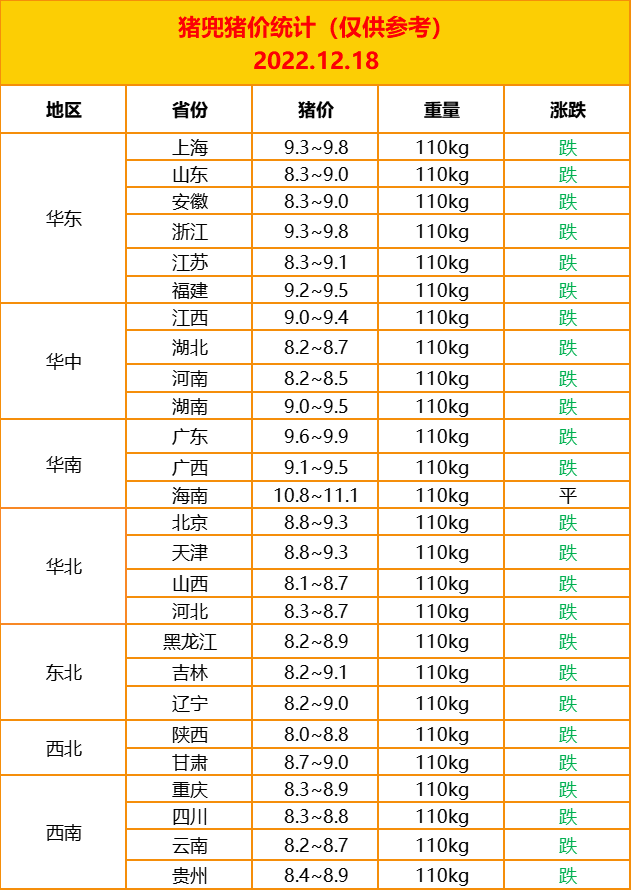 12月18日,全国猪价25地下跌,1地平稳。生猪价格下跌会持续多久?元旦前还有反扑的机会吗? 首先,生猪价格下跌不会持续太久,因为压栏生猪出栏率已达70%左右,剩下的压栏生猪会让冬至和元旦两个消费旺季消化掉,随后生猪价格会进入稳定期。 其次,元旦前,生猪价格还有反弹的机会。 因为各地消费水平不一致,消费高的地区,猪价上涨的机率会大,局地生猪价格反弹上涨是有的,大面积上涨的可能性较小。 总体来看,生猪价格处于震荡调整期,上涨地此起彼伏,但是,生猪价格大幅反弹上涨的动力仍然不足。 来源:猪价收集于网络、农言明日猪价等仅供参考,如涉嫌侵犯您的著作权,请联系我们删除,谢谢! 往期精选