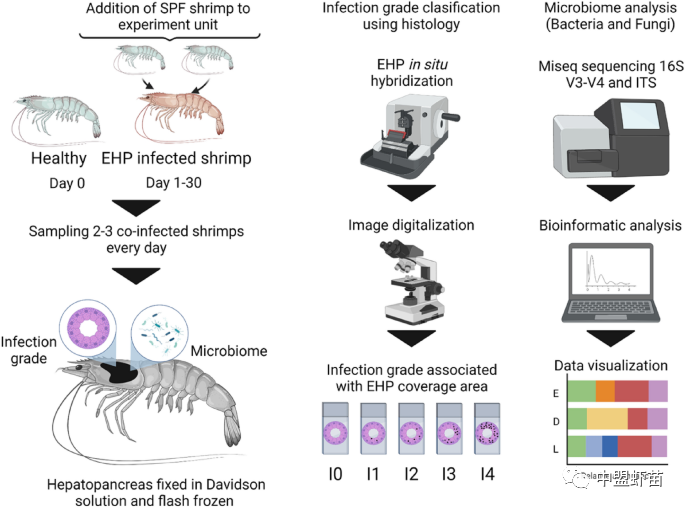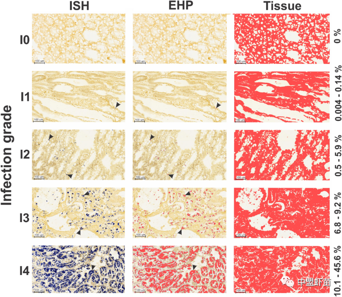 图2:EHP感染强度级别,感染程度使用EHP感染指数(EII)通过原位杂交 (ISH) 评估传染性。