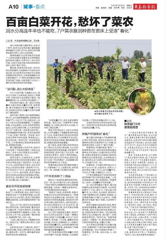 百亩白菜开花愁坏了菜农因水分高连牛羊也不能吃7户菜农推测种苗在苗床上受冻春化