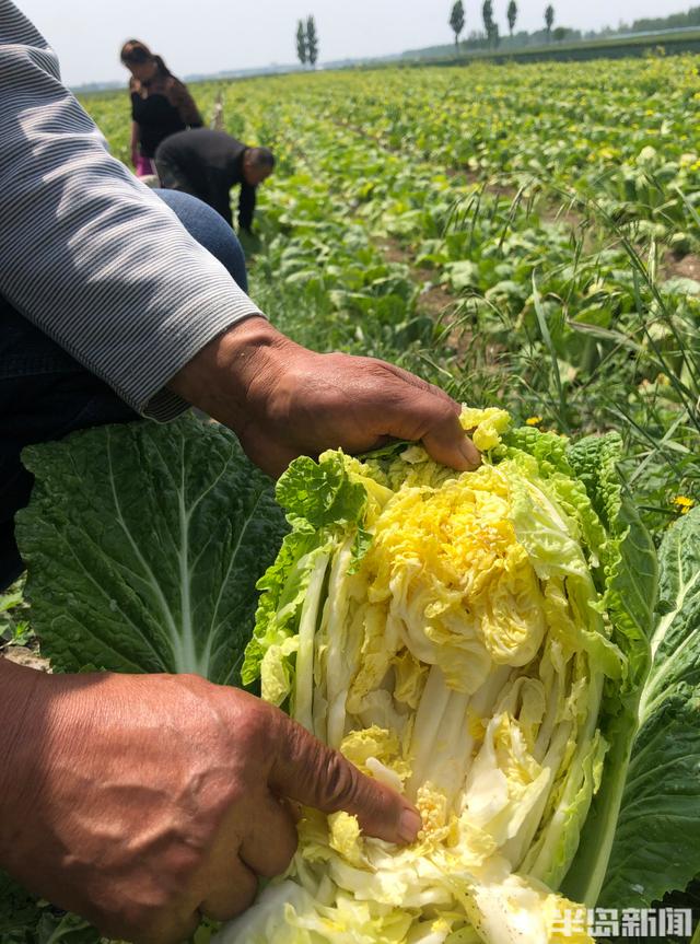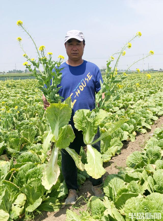 5月10日的平度,气温高达30℃,杨京汉又来到了白菜地里。他拔出了两棵白菜,对身边的半岛全媒体记者说:“抽薹最高的有1米,今年的白菜全都废了。”