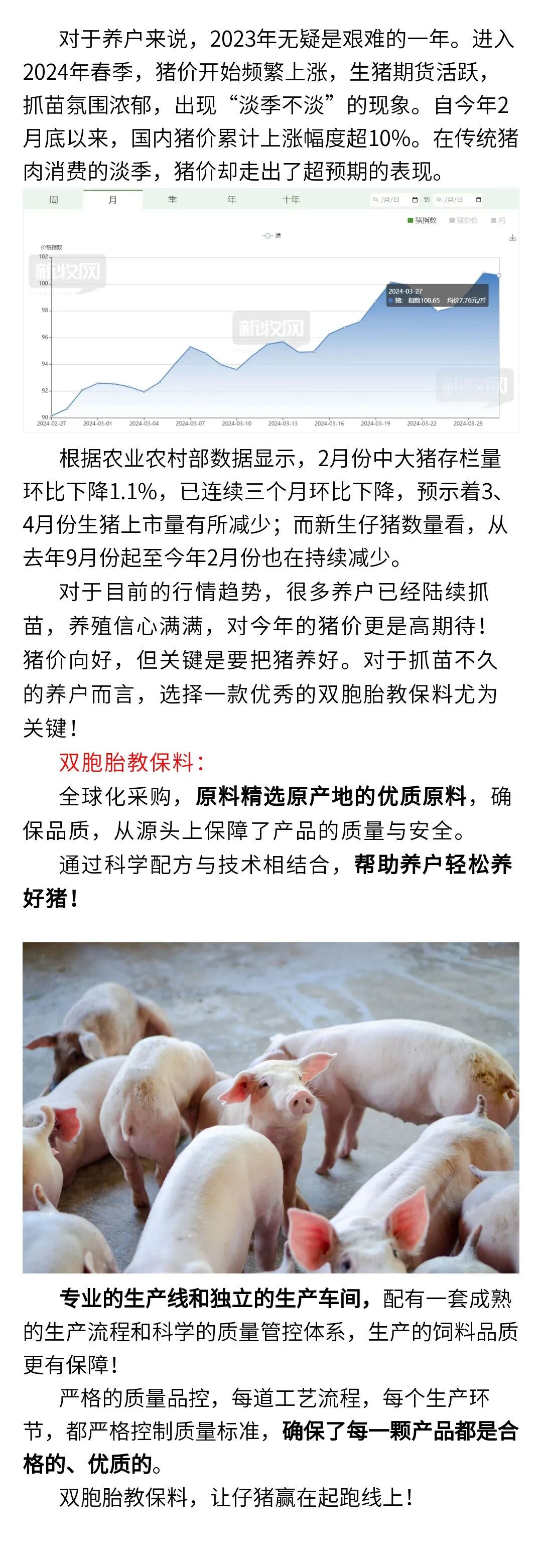 好猪价,抓苗多!选双胞胎教保料来助力!