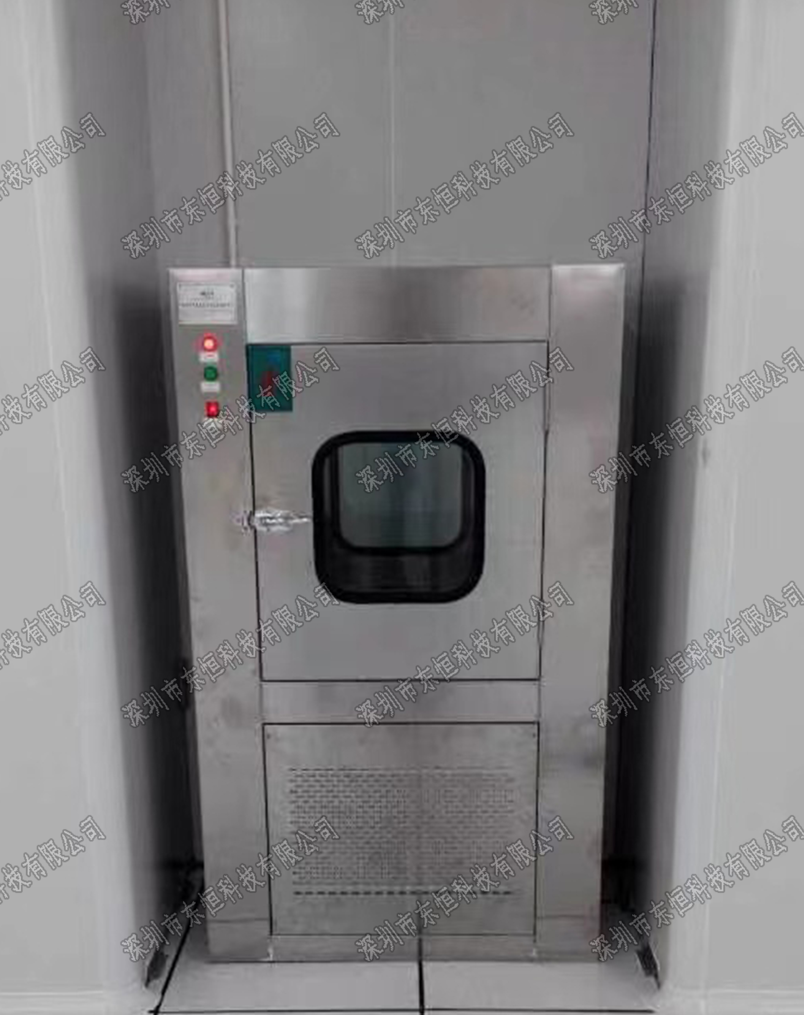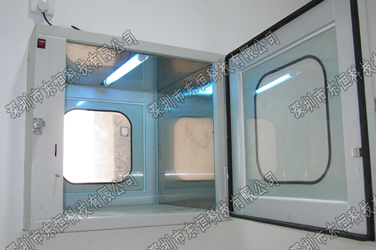 传递窗内安装有紫外灯,物品经紫外线照射消毒后进入洁净区。一方面起到气闸作用,不让高级别的洁净室中高压被泄漏,另一方面在传递过程中实现自净效果,以确保进入洁净区物品的自身洁净,减少物件带来的交叉污染。