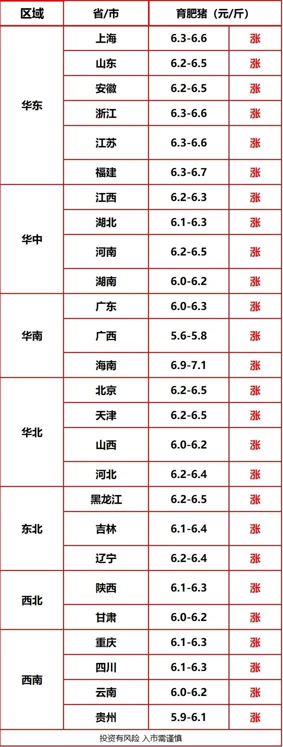 【今日猪价】10月29日 全国猪价上涨