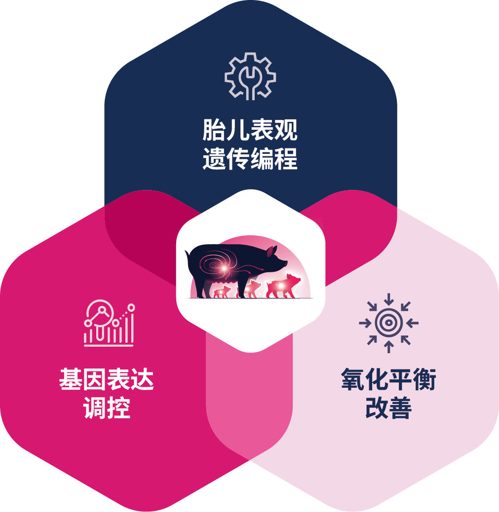 仔猪的生长潜力就像一套精密的能量系统,而基因是控制这套系统的“开关总闸”。通过母猪妊娠及泌乳期精准补充功能性营养素,上调后代仔猪关键基因的表达。这并非改变基因本身,而是通过营养信号,“拨动”基因开关,使其发挥更强作用。