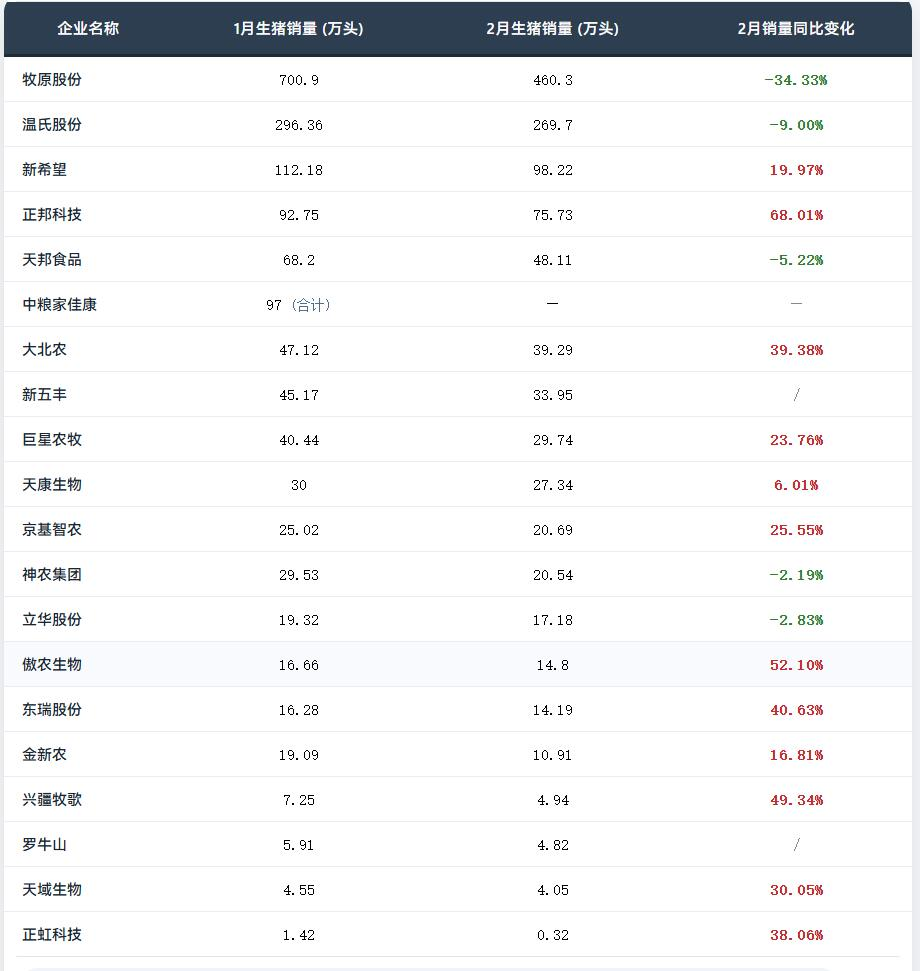 上市猪企1-2月数据曝光,三大梯队分化严重