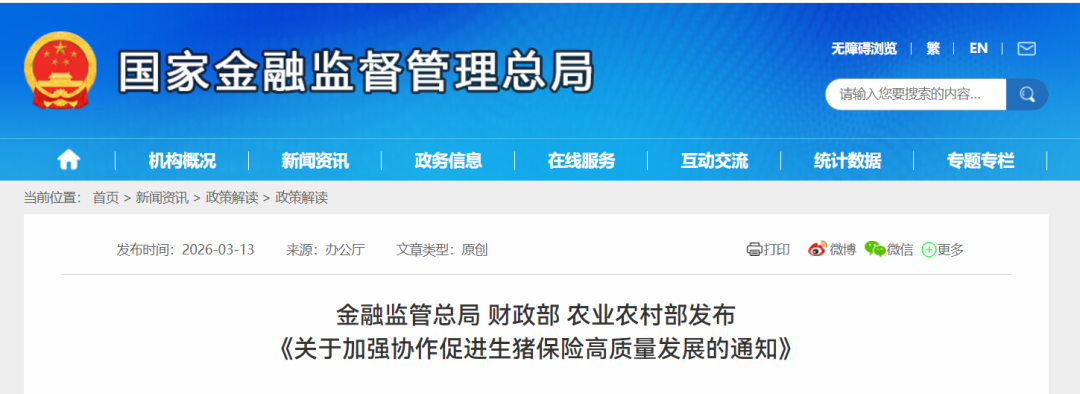 该赔的赔不上,不该赔的吃的盆满钵满,为扎实推进乡村全面振兴,促进生猪产业稳产保供,保障养殖场(户)合法利益,助推生猪保险高质量发展,金融监管总局、财政部、农业农村部联合发布《关于加强协作促进生猪保险高质量发展的通知》(以下简称《通知》)。《通知》对于推进生猪保险领域精准投保理赔,促进生猪保险提质增效,优化生猪保险发展环境,提高生猪领域灾害应对能力具有重要意义。