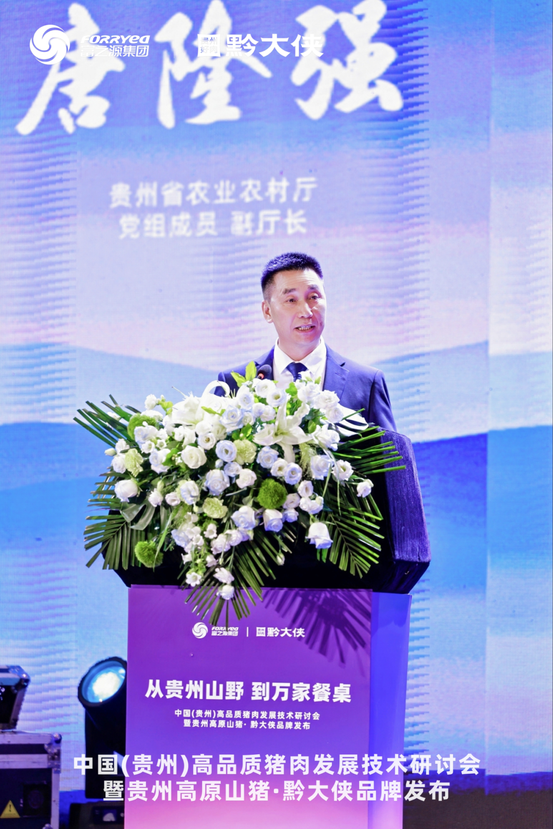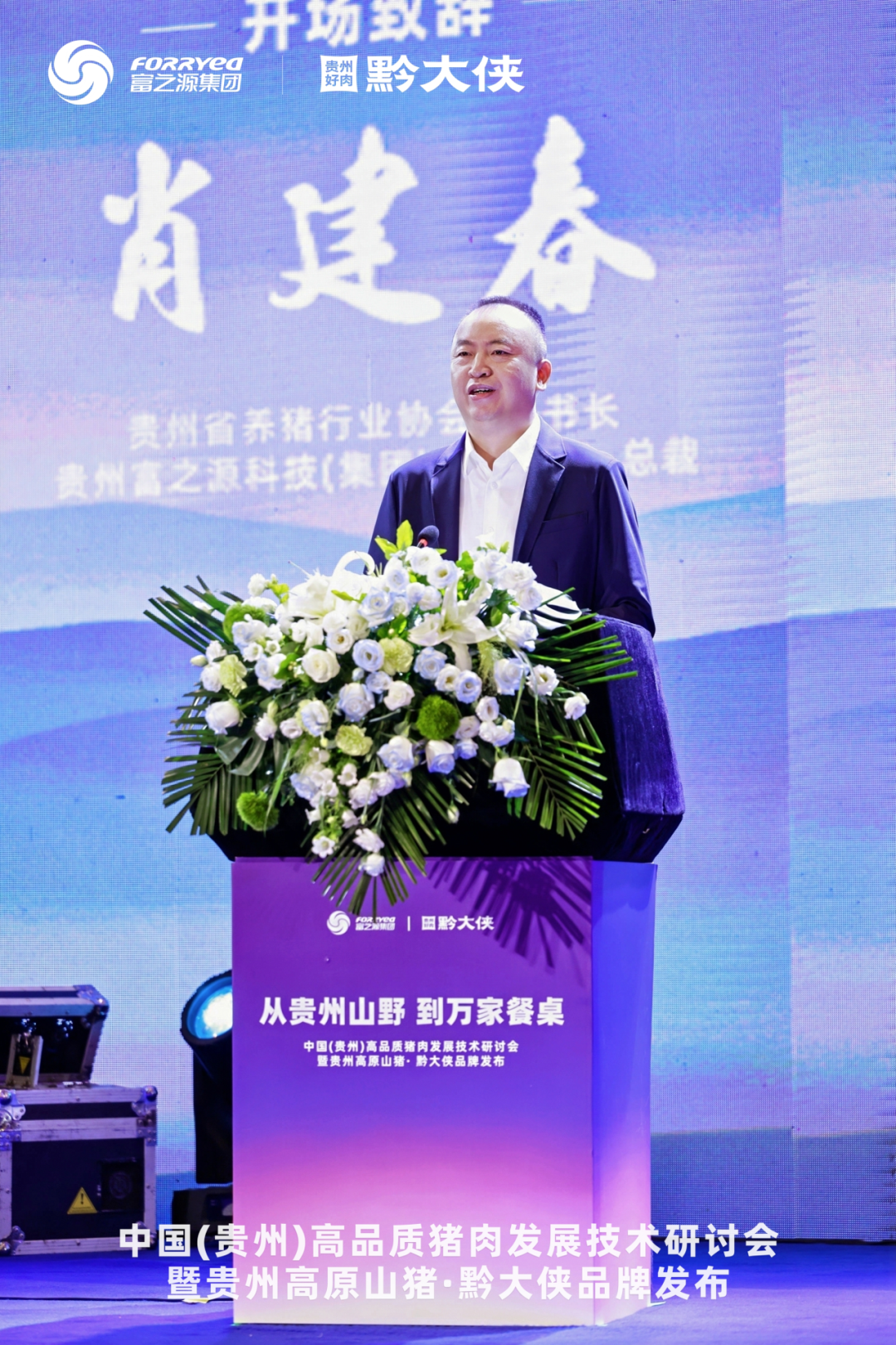 贵州省养猪行业协会秘书长、富之源集团总裁肖建春致开幕辞,贵州省农业农村厅党组成员、副厅长唐隆强,贵州省人大原副主任、副省长何力出席并讲话,从产业政策与乡村振兴角度肯定了技术驱动对贵州生猪产业高质量发展的支撑作用。