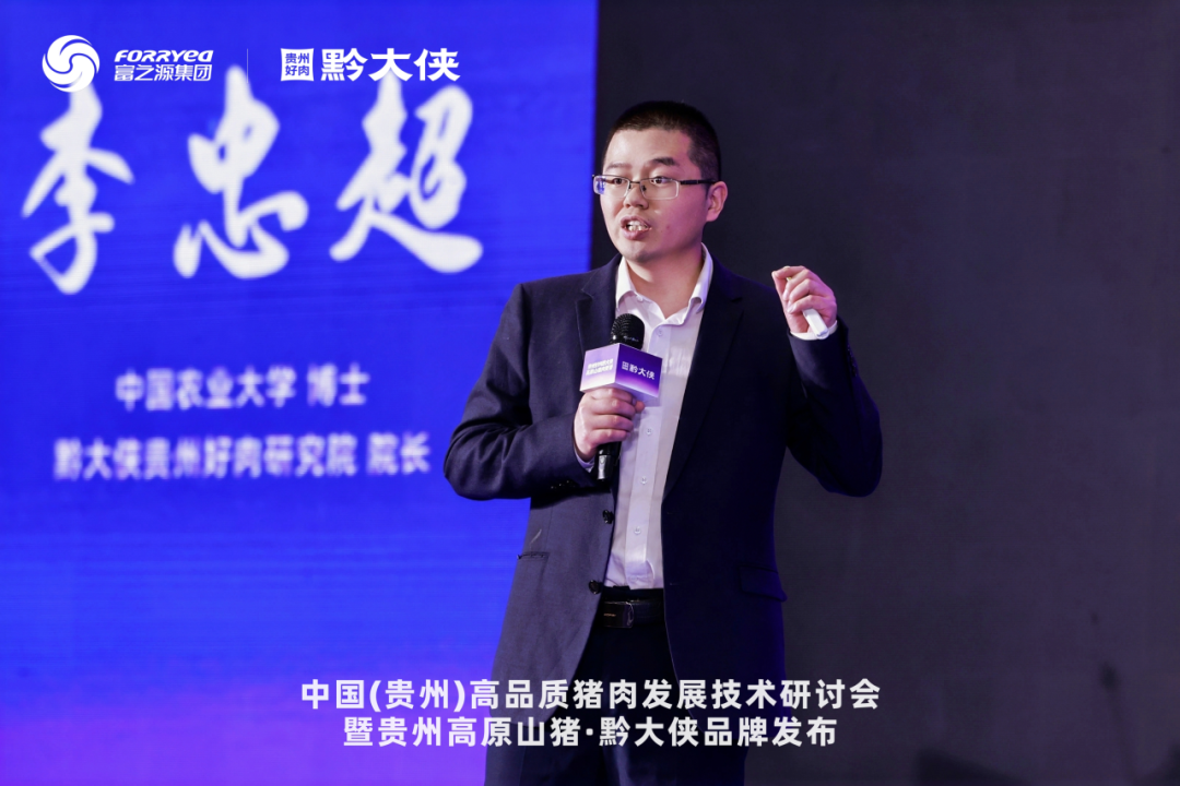 黔大侠贵州好肉研究院院长、中国农业大学博士李忠超则在《贵州高原山猪・定义高品质猪肉新标杆》报告中从生态、安全、数据等三个标杆重新定义了高原山猪的高品质。